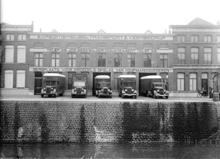 | De verhuiswagensvan Beekwilder op de Handelskade. | ![]() |