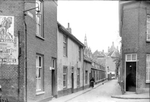 -Boven: Het Voldersstraatje lopend vanaf de Zuidwal naar de Verwersstraat. Foto kort voor de oorlog '40-'45. -Links: Het Voldersstraatje met de getroffen westzijde van de straat na een bombardement door Engelse vliegtuigen. Inkijk in het Voldersstraatje, ook weer vanuit de Zuidwal. © oude archief foto's, mei 1940 [linker foto's] |