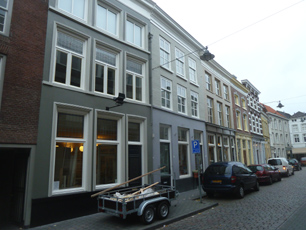 Links: De situatie in 2012 in de Kruisstraat. vlnr stukje Poort van Diepen, de nummers 8A, 10 12 en 14. foto © paul kriele, 8 november 2012. |