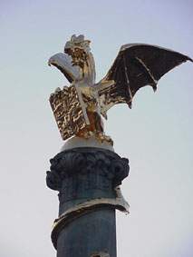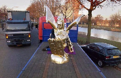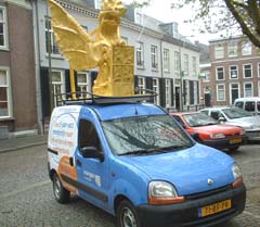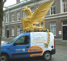 | In 2005 reed door de stad een promotiewagen van een gasleverancier. Daarop is- prominent - een vergulde Draak neergezet. De vergulden vogel is een echte blikvanger ! |