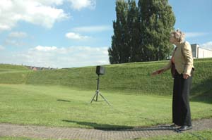 Het was een zonnige setting met parasols, drank en sunny people, taferelen die vanaf begin september 2007 te zien zijn op www.B-there.nl . Ruud van der Beele leidde deze opnamen die door een passerende surveillancewagen even werden geïnspecteerd. Voor de meeste Bosschenaren was het nog tamelijk vroeg [ 9-10 uur].