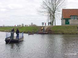 Het pontje waarop wandelaars, of vanaf de polder naar het Vughtereiland kunnen varen, of vanaf de Vughterstuw naar de polder, loopt door mankementen telkens vast.