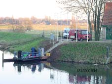 Op de middelste foto neemt Watergraaf Ad Segers afscheid om elders opnieuw een stuw te openen: de 16e en de 17e in een reeks van 110 stuwen die in 2018 gerealiseerd moeten zijn. -foto's © paul kriele, 19 december 2003.