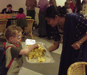 Daartussen door deden kinderen in alle formaten en kleuren zich tegoed aan snoep en exotische en Hollandse hapjes gemaakt door vrijwillige ouders.