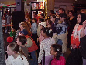 | Het leek er zondagmiddag op dat het TheateradParade uitpuilde en de kinderen hun toevlucht moesten zoeken op de Parade. foto © gerard monté , 21 april 2002. |