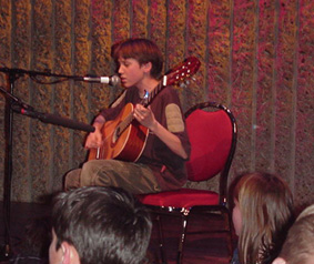 Rechts het solo-optreden van de gitarist Noël Josemans. foto' s gerard monté, 21 april 2002 |
