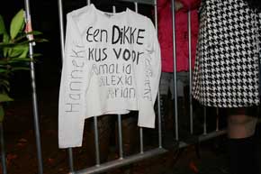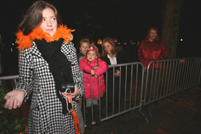 | Er zijn altijd wel fans te vinden die alle openbare bijeenkmsten aflopen om hun idolen te kunnen aanschouwen. Dit keer -op het gouden jubileum van het Erasmusfestival- waren het Heusdenaren die vooraan bij de dranghekken stonden om een glimp van prinses Maximá en kroonprins Willem Alxander te kunnen opvangen. Rechts: een op elektriciteit rijdende demo-wagen van Essent, die een van de hoofdsponsors is van het festival. foto' s © marc venrooij, 7 november 2008. |