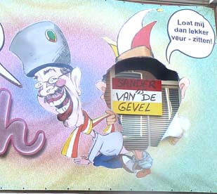 Vanmorgen woensdag 6 febrauri 2013 heeft de uitbater van Push, Jan Willem Bresser de plek waar Sander van de Gevel[minister-president van Oeteldonk] zijn voorganger, Frank Reyner, neemt, weggesneden. Bij dat ontstane gat is gezet: 'Sander is van de Gevel'..
