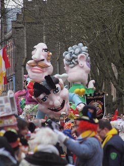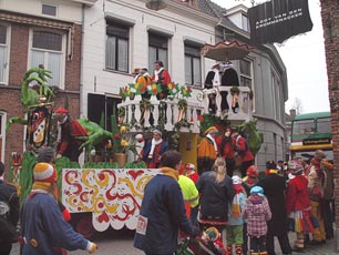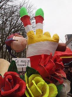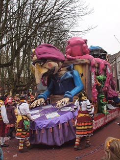 -Links: De Pereplukkers. -Onder: de Prinsenwagen. foto's © ellen elemans, 10 februari 2013. |