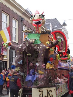 Door de kille straten van Oeteldonk trok een erg kleurrijke stoet met natuurlijk veel rood, wit en geel, maar ook veel sprookjes-, en natuurgroen.