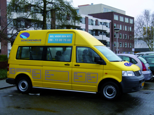 De seniorenbus die van maandag t/m vrijdag [werkuren] van deur tot deur gaat. |
