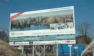 ![]() | Bouwbord met info over de nieuwbouw op de oude HAS-locatie. foto © paul kriele,18 maart 2013. |