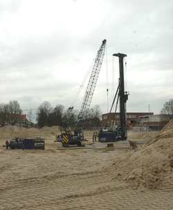 | -Boven: de Gebr. van Wanrooij zijn met het heien begonnen voor de bouw van drie 'Amazone-flats'. -Rechts: Boven het HAS-terrein schijnt voortaan het zonnetje, al is het een kunstwerk. .. foto's © paul kriele, 16 april 2013. | ![]() |