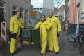 Deel mee: Van de week was de kick off van een nieuw project 'Stations Verhaal Centraal'. Door 5 grote Brabantse steden trekt een groep in gele pakken gestoken kunsteaars die bij de burgers een obejct ophalen , dat verzamelen in koffers op een zgn. veegkar en bij dat inzamelen vragen om het verhaal daar omheen.
