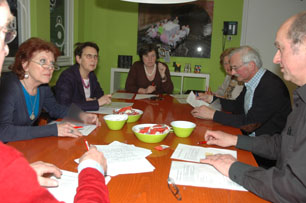 De jury olv Nort Lammers [¨2e van rechts], die vaak in eerdere edities als eerste eindigde. Rechts vooraan nog zichtbaar Erwin Verzantvoort van boekhandel Heinen/Selexyz.. foto © paul kriele, 10 april 2013. |