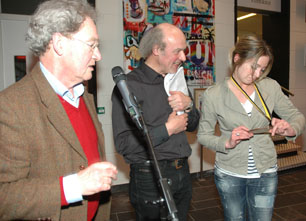 ![]() Sarah Rovers behaalde bij het debutantendictee de eerste prijs. Op de foto verder Vincent Verstappen[l.] en Erwin Verzantvoort. foto´s © paul kriele,10 april 2013. |