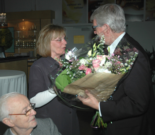 Voorzitter van de werkgroep Boschlogie Nannie van Berkum reikte Free een boeket aan , maar zelf nam zij deze avond ook afscheid van Boschlogie. |