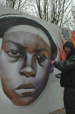 In dat weekeind komen tal van [internationale] kunstenaars naar Den Bosch, waaronder de top 5 van Nederlandse graffitiwriters. Zij zullen in twee dagen tijd van een saai vlak een adembenemend kunstwerk maken.