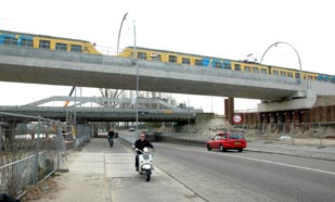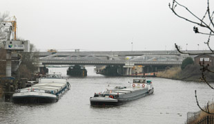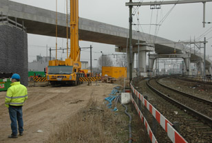 -Naast de fly-over komt er over de Dieze nog een nieuwe spoorbrug, die de oude ijzeren brug vervangt. -Links onder Behalve een nieuwe spoorbrug worden tegelijkertijd ook de wissels en rails op het emplacement vervangen. foto´s © paul kriele, 28 februari 2013 [r.] en 15 april 2013. |