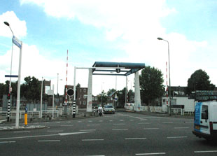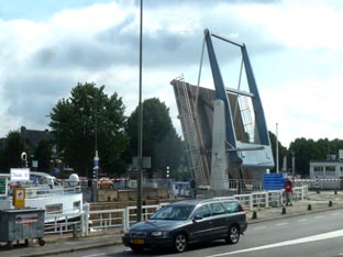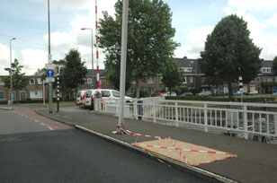 De oostelijke kanaalbrug bij Sluis O, die mankementen vertoont. In het wegdek zit een gat... foto's © paul kriele, 29 en 30 juli 2013 |