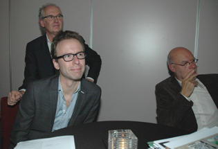 Jos Groenier [achterin], Huibert Wilschut [productieleider van de Koningstheater Akademie] en Ton Meulman [r.] [voorheen eigenaar Adr.Heinen] gaven een toelichting bij het onderdeel dat onder hun verantwoordelijkheid valt. foto © paul kriele, 25 september 2013. |