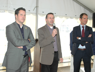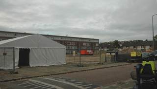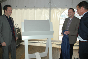| -Rechts :de toespraken van vlnr wethouder Jeroen Weyers, Henk Roozendaal van Brabant Wonen en Clemy van Wanrooij van Bouwbedrijf Van Wanrooij. -Onder: de locatie aan de Copernicuslaan. -Rechts onder: De onthulling van de oude muursteen * van 1952, toen burgemeester Hein Loeff de bouw symbolisch startte. foto´s © paul kriele, 21 oktober 2013. *zie tekst muursteen hieronder |