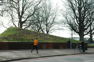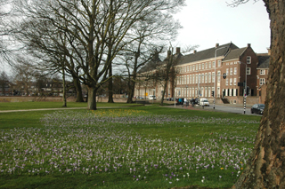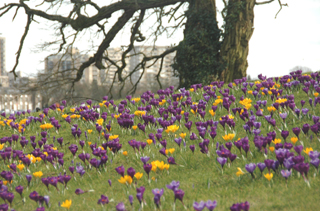 | Op Bastion Oranje en ook op het Bastionder staan de paarse en gele crocussen al in bloei. foto's © paul kriele, 23 februari 2014. |