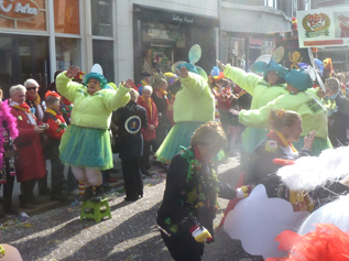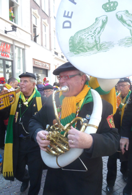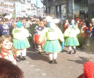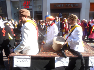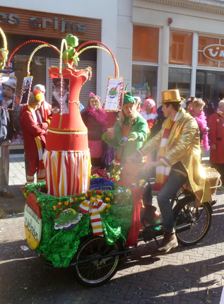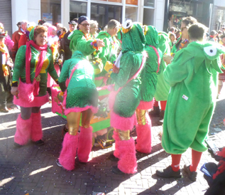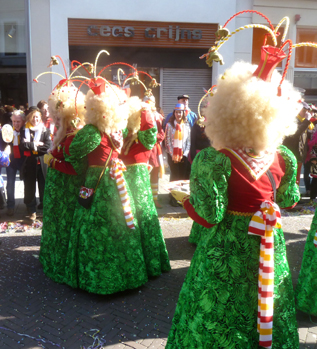 ![]() | -Boven: VVOF, ofwel Vereeniging van Oeteldonkse Fakhirs.: 'Voor een fluit haal ik hem eruit...'stond e rop een kaartje.. -Onder Kikkerdames en een zweefmolen. -Links: Brabants-Limburgse Vrouwkes Harmonie. |