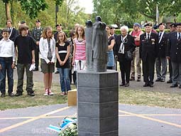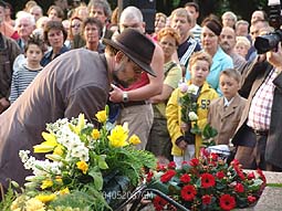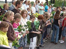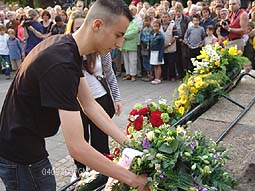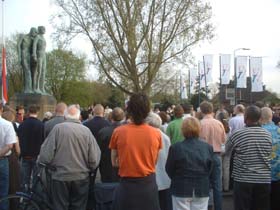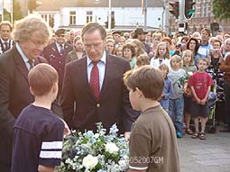Ontroerend was dat enkele kinderen, sommigen erg jeugdig, een bloemetje bij het beeld [ontwerper Peter Roovers ] van de gevallenen legden.