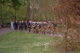 Na muziek, enkele toespraken en voordrachten van enkele scholieren trok een stoet onder begeleiding van de Koninklijke Harmonie voor een kranslegging naar de Casinotuin, resp. de Hekellaan.