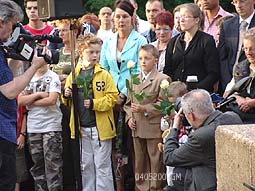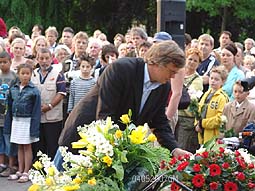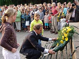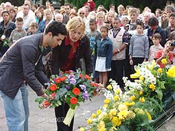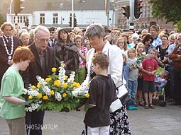 Na de officiële kranslegging mochten alle aanwezige kinderen een door het stadsbestuur ontvangen roos neerleggen.