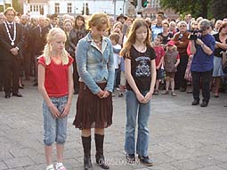 Vanuit de Nederlands Hervormde Kerk trok de stoet, voorafgegaan door de Stadspijpers, naar de Casinotuin. Daar staat het Joods monument , dat herinnert aan de weggevoerde Joodse schoolkinderen. Het monument is geadopteerd door leerlingen van het St.Janslyceum en van de basisschool Het Bossche Broek. foto's © paul kriele, 4 mei 2006. |