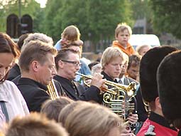 Na het voorlezen van gedichten en teksten door de scholieren werd het Wilhelmus gespeeld en gezongen [m.]. foto's © gerard monté, 4 mei 2007. |