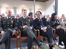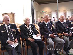 | Boven links: Burgemeester Rombouts met echtgenote, geflankeerd door officieren van het Nederlandse leger: majoor Damme en majoor Steverink. Boven rechts: oud-militair Jan van Ee. Rechts: oud-verzetsmensen, allen voor een herdenking in de Nederlands Hervormde Kerk bijeen. foto's © gerard monté, 4 mei 2007. |
