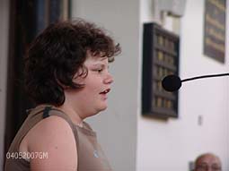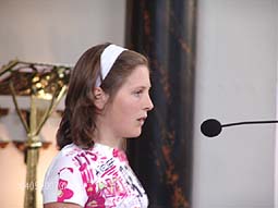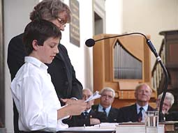 Leerlingen van de basisschool Het Bossche Broek en hieronder [l] leerlingen van het St. Janslyceum lazen teksten voor van mensen die de oorlog hebben meegemaakt. foto's © gerard monté, 4 mei 2007. |